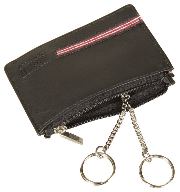 С внешней стороны на задней стенке имеется карман на молнии. Внутри два кольца для ключей. Закрывается на молнию.