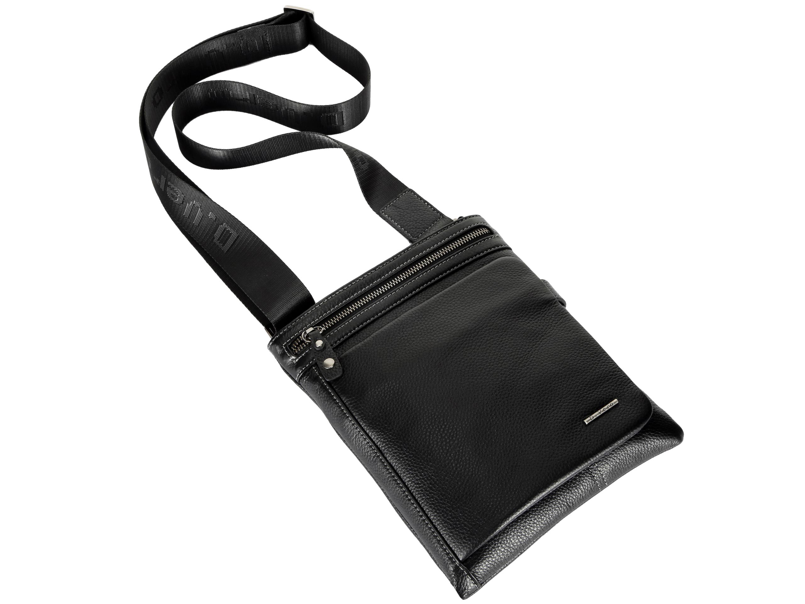 Стильная мужская сумка для документов из высококачественной телячьей кожи. Закрывается на молнию. Внутри предусмотрено место для авторучки, отделения для телефона и смартфона, внутренний карман на молнии. Сзади и спереди карманы на молнии. Снаружи спереди вертикальный клапан закрывается на магнитную кнопку, на клапане с внутренней стороны потайное отделение на молнии и два открытых кармана. Сумка имеет длинный регулируемый тканевый ремень.